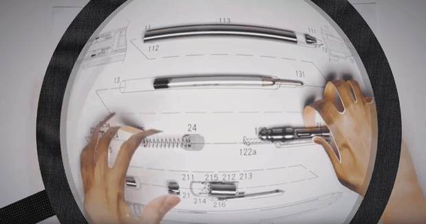 ペン先/ペン軸/締め具/ガイドポイント/中軸/中圈/バネ大/バネ小/ムーブメント/ガイド/ノック/ペン軸上部などなど、いずれも職人の魂が生きています。