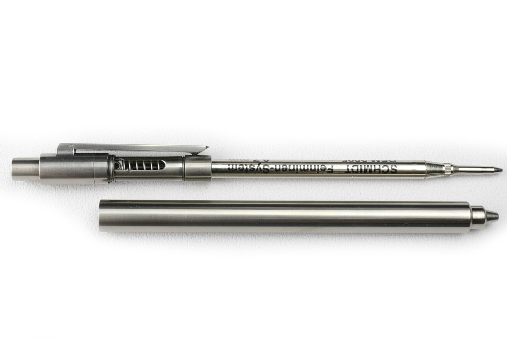 鈦合金耐酸、抗鹼、不生鏽,而且身體不會排斥,過敏, 是製作個人隨身物品的最佳材料,鈦極筆™全部的零件都是由鈦合金製作,重量輕,僅21克,適合長時間使用。最耐用的表面處理就是回歸金屬最原始的材質,整支筆由鈦合金棒打造,再怎麼磨都是鈦金屬,刮傷了可以使用極細砂紙回復原樣,而且由於鈦的特性,摸著鈦極筆不會感覺冰冷,反而會是一種暖暖的溫度留在手上。