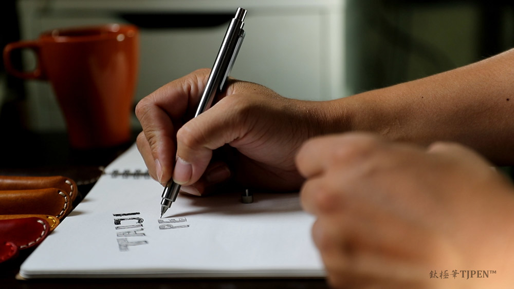 拿著鈦極筆寫字是很舒服的,不會有任何接縫卡住你的手,整支筆桿表面還留有極細微的鈦金屬紋路, 沒有經過電鍍層撫平或烤漆的填補, 所以握起來不澀不滑。越簡單的線條越難製作,線條要簡單,內部結構一定不簡單,長達109MM的上管,製作起來相當困難,特意調整的前後1:1配重,寫起字來格外輕鬆。