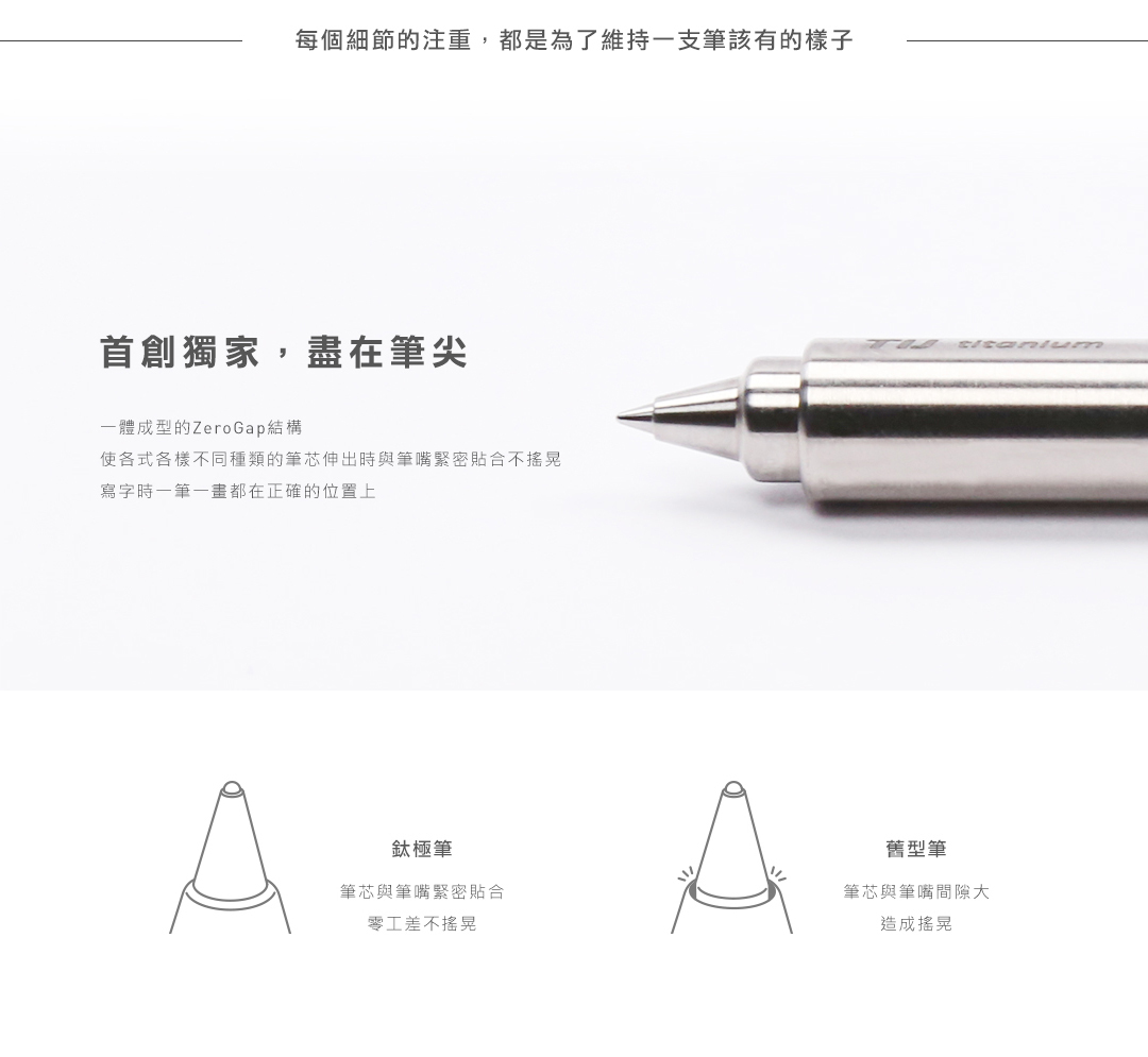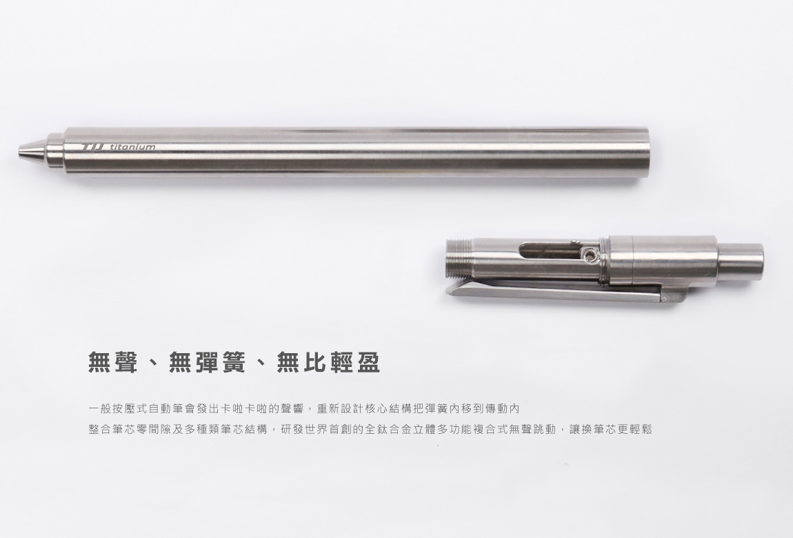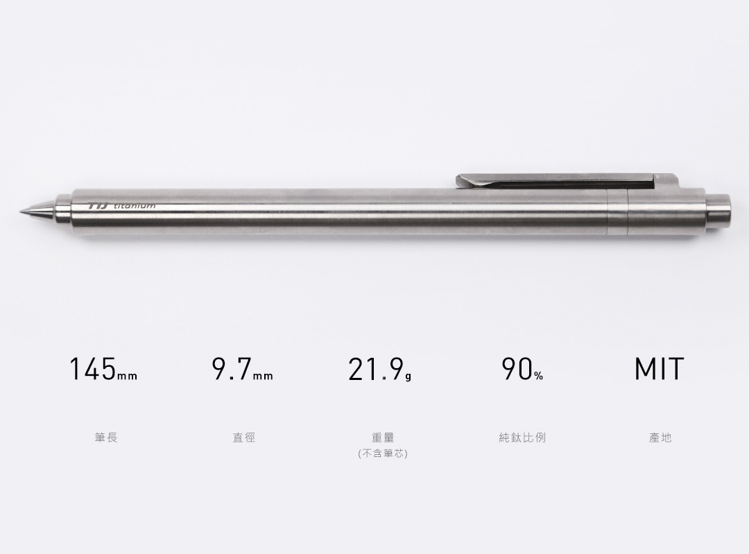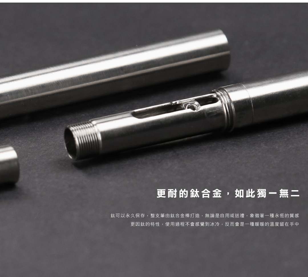 7. 使用高級TC4鈦材:全系列鈦極筆使用TC4實心鈦圓棒製作,成分純淨,更具珍藏價值。